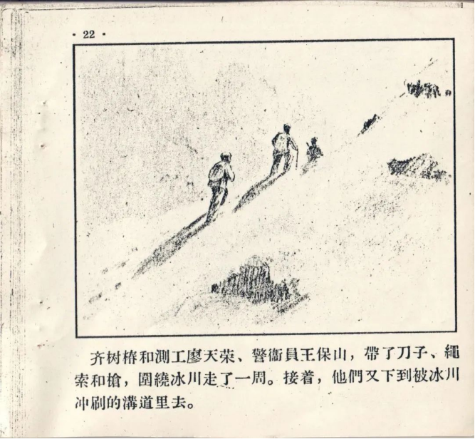 这本以齐树椿为原型的小人书在1957年出版,详细介绍了他探勘冰川的英勇故事。