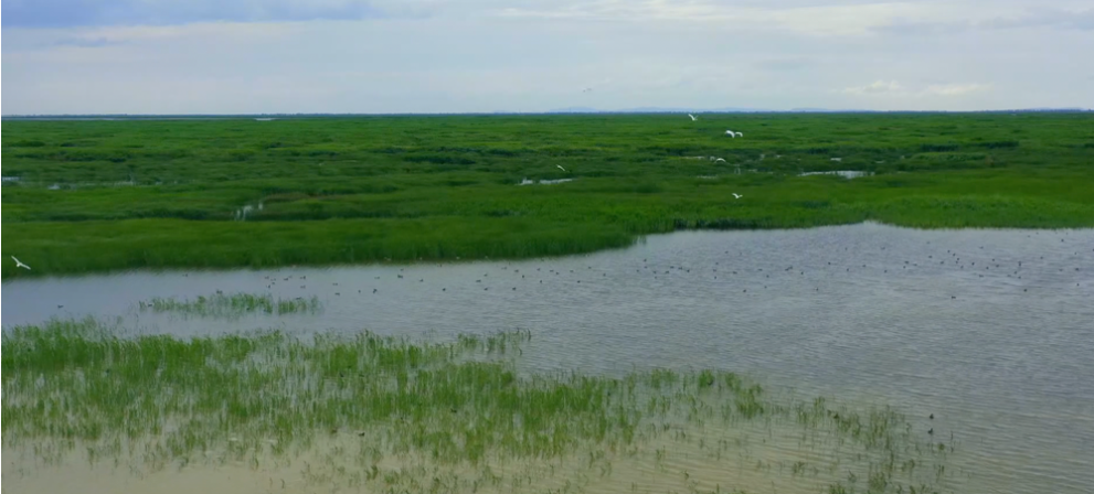 幽蓝的湖水和金黄的苇丛,疣鼻天鹅等鸟儿轻盈地掠过湖面,这样的景色来自如今的内蒙古巴彦淖尔市乌梁素海。