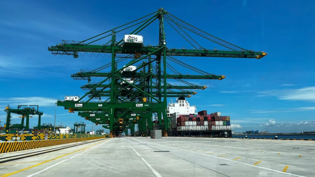 新加坡PSA大士自动化码头项目是新加坡政府规划的超级港口建设工程,振华重工为其提供28台双小车自动化岸桥、78台自动化轨道吊,该码头设计年吞吐量6500万箱,建成后将成为世界吞吐量最大的全自动化码头。目前,项目团队已顺利完成6台自动化轨道吊的单机功能和整机自动化传感器设定的调试任务。春节期间,临近第一期工程中4台自动化岸桥的交付节点,为了保交货、保营收,振华重工共有20名工程师和12名工人坚守工地一线,为设备按时、顺利交付奠定了坚实基础。