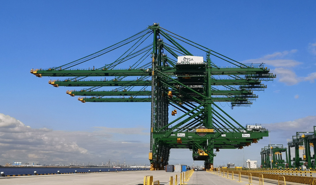 新加坡大士港自动化码头项目是新加坡政府规划的超级港口建设工程。该码头是集港口航运、临港工业、造船业及其他港口事业为一体的超级港口综合体,占地约13.37平方公里,拥有26公里深水泊位,处理能力将达到6500万标准箱,比新加坡港2021年3750万标准箱的处理能力几乎翻倍。振华重工项目团队攻克技术创新难题,成功打造出目前世界上参数最大、速度最快的双小车自动化岸桥以及采用当前最先进控制技术的大型单悬臂自动化轨道吊;自主研制出独立平台式自动拆装锁销机,打通自动化码头作业“最后一公里”。振华重工通过不断的技术创新,助力新加坡进一步夯实国际航运枢纽地位,开拓海上运输业新机遇。